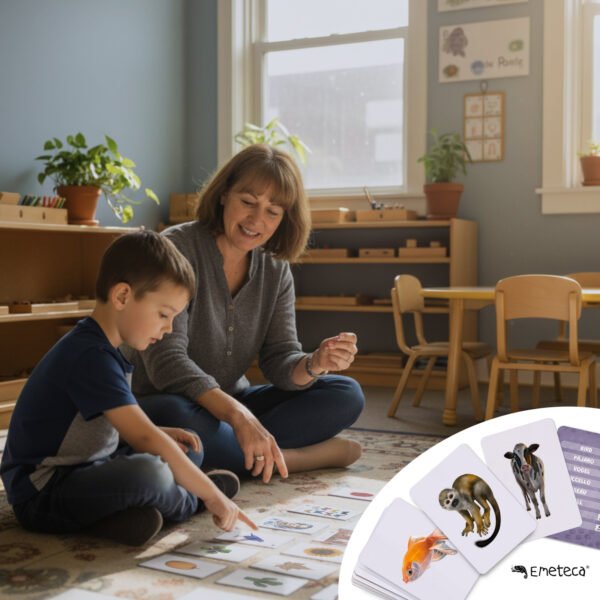 Las tarjetas de la colección Primeras palabras multilingües están basadas en la metodología Montessori, promoviendo la autonomía, la exploración y el aprendizaje a través de la experiencia visual y sensorial.