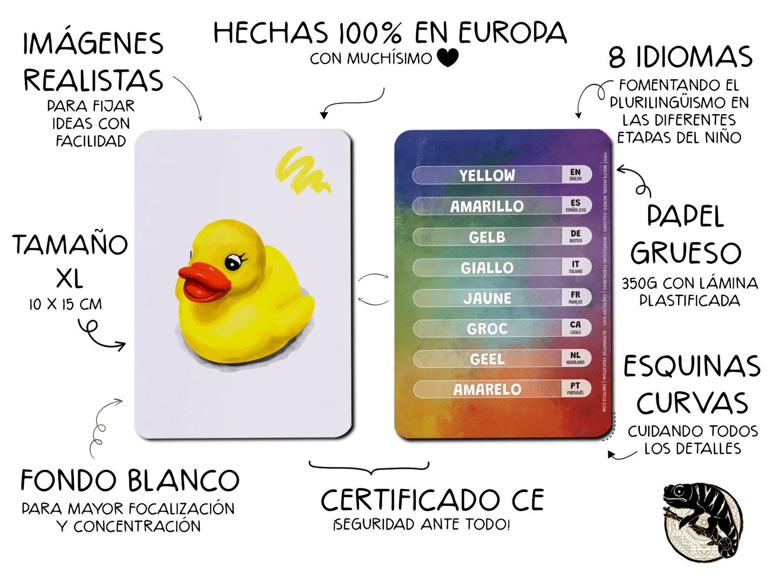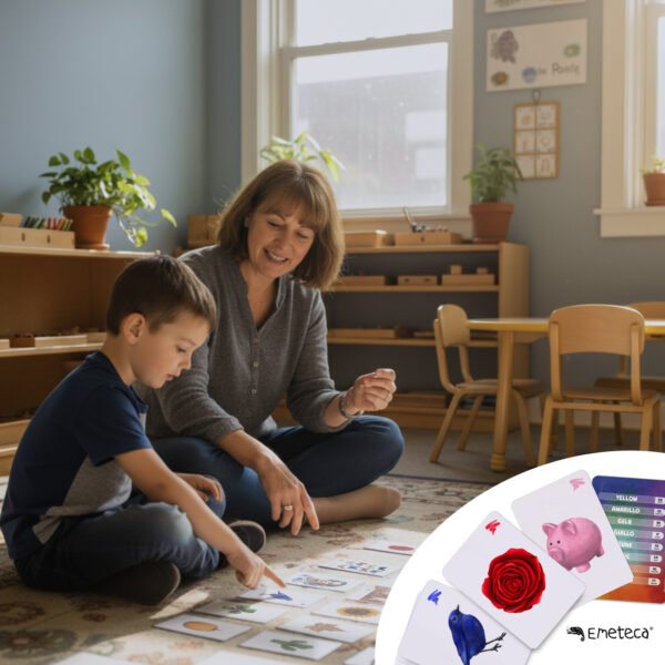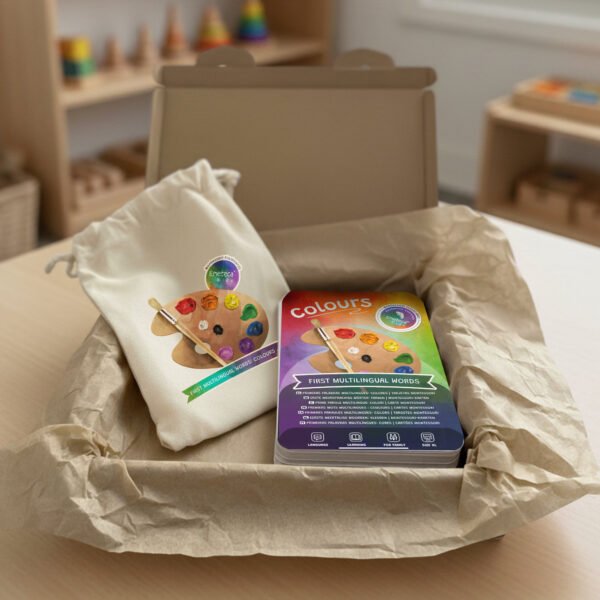 Las tarjetas de la colección Primeras palabras multilingües están basadas en la metodología Montessori, promoviendo la autonomía, la exploración y el aprendizaje a través de la experiencia visual y sensorial.