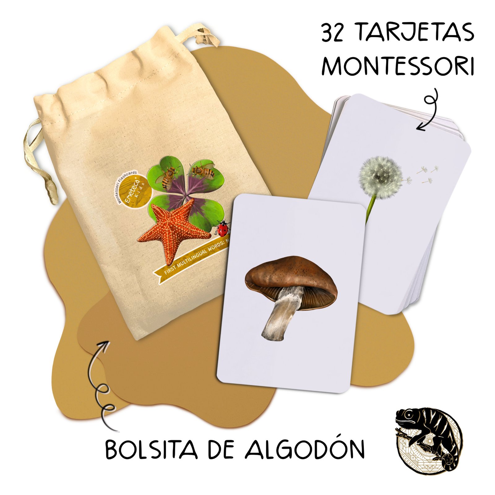Tarjetas Montessori de la Naturaleza · Colección Primeras palabras multilingües · Emeteca Kids.